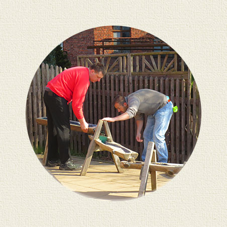 Bei schönstem Arbeitswetter trafen sich viele kleine und große Helfer, um die Außenspielgeräte und den Garten der Schatzinsel auf Vordermann zu bringen. Getreu dem Motto: „viele Hände – schnelles Ende“ wurde geschliffen, gestrichen, geputzt, aufgebaut und repariert. Gemeinsam stärkten wir uns an den hausgemachten Spezialitäten und den gesponserten Getränken von Sternquell und Brambacher. Gemeinsam geht es besser! Die Eltern der Schatzinsel