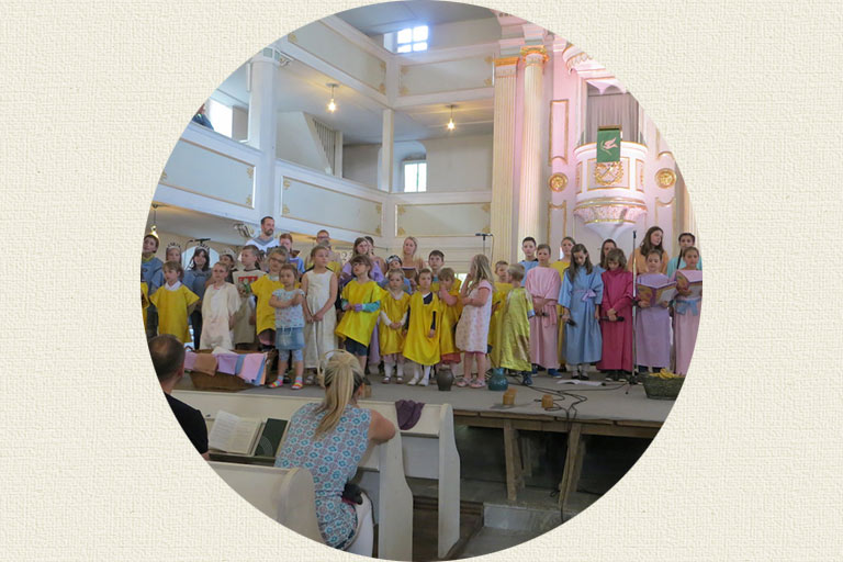 Im Anschluss gab es Kaffeetrinken im Martin-Luther-Saal und leckeres Eis in der „Schatzinsel“. Als Programm an den Ständen auf dem Gelände des Kindergartens und im Kirchhof nahmen Familien und Einzelne mit Spaß und Freude an den Transport-, Bewegungs-, Sprach- und Länderspielen teil. Ein Glück hielt das Wetter, abgesehen von einem kurzen Regenschauer, durch. Zuletzt riefen uns die Posaunen zum Abschluss mit Gebet, Lied und Segen auf der Lutherwiese zusammen.