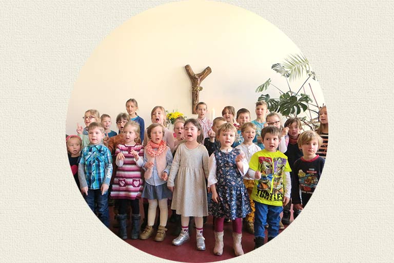 Mit einem gemeinsamen Gebet und Segen ging der Gottesdienst zu Ende. Zur Erinnerung bekam jeder eine Ostereierkerze mit auf den Heimweg. Wer wollte, konnte beim anschließenden Kirchenkaffee noch leckeren Kuchen genießen, den fleißige Elternratsmitglieder gebacken hatten. Einige nutzten die Gelegenheit, für den Weiterbau an unserem Außenspielgerät zu spenden: insgesamt gingen 121.– € ein. Heike Galle